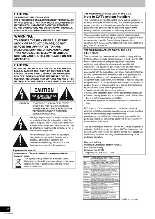 Panasonic DMR-EH75VP DVD/VCR Combo Owner's/ User Manual (Pages: 134)