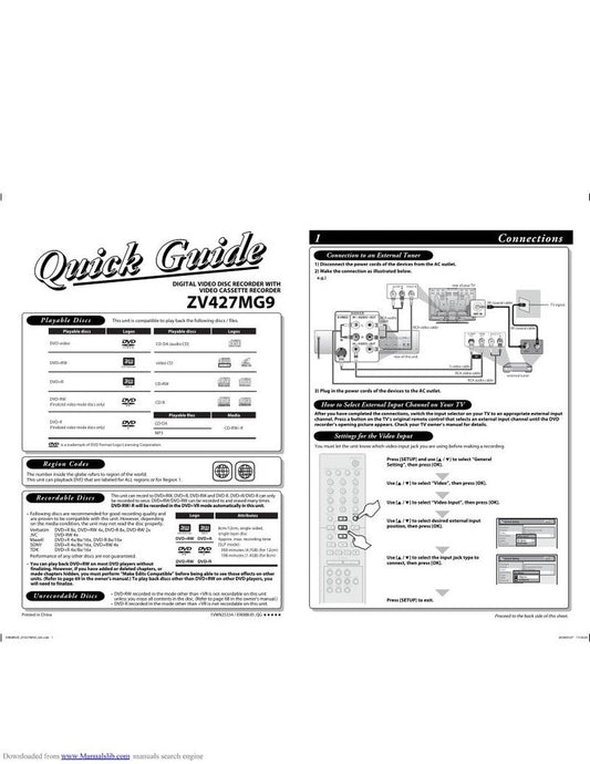 Magnavox ZV427 MG 9A DVD/VCR Combo Player Operating Manual