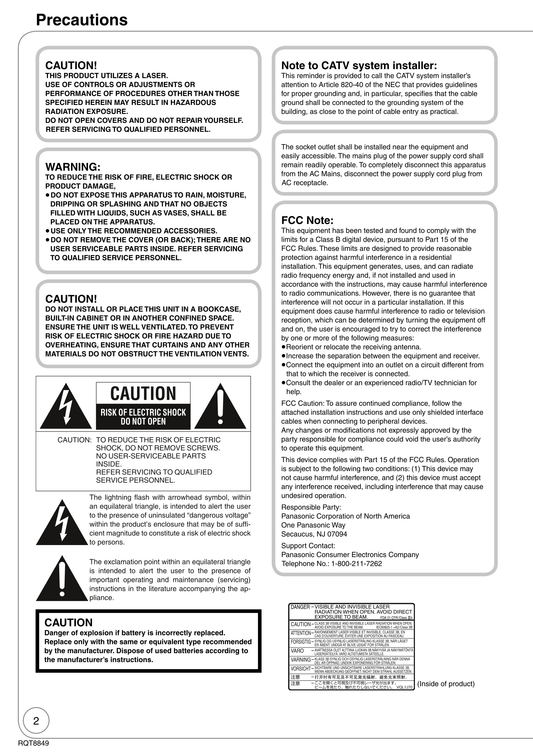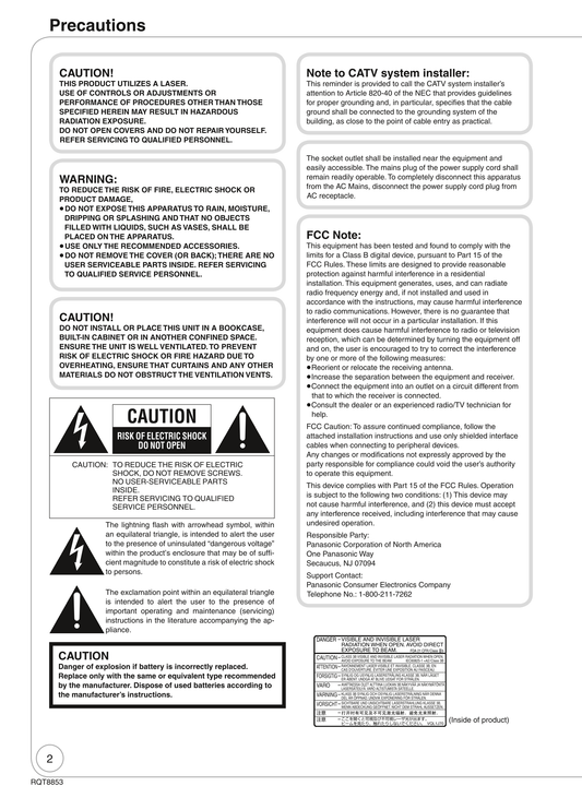 Panasonic DMRE75 DMRE75V DVD/VCR Combo Player Operating Manual