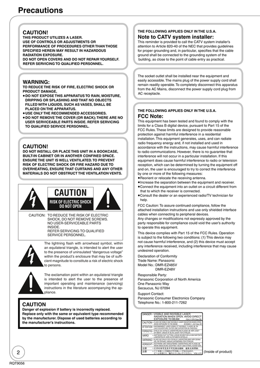 Panasonic DMR-EZ48V & DMR-EZ485V DVD/VCR Combo Owner's/ User Manual (Pages: 100)