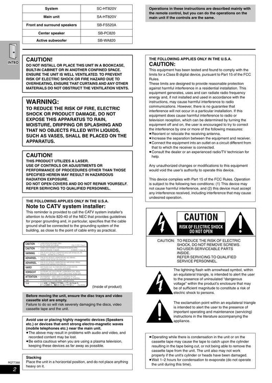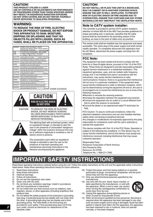 Panasonic SAHT820 SAHT820V SAHT820VP DVD/VCR Combo Player Operating Manual