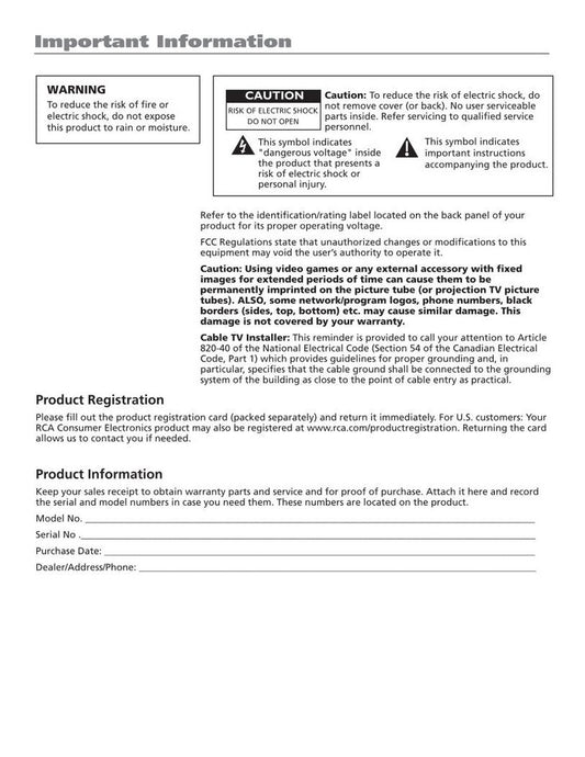 RCA HD52W58 HD56W58 HD56W58YX1 DVD/VCR Combo Player Operating Manual