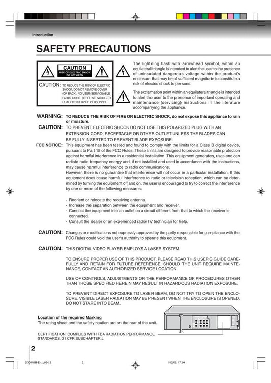 Toshiba SDK530 SDK530SU SER0122 DVD/VCR Combo Player Operating Manual