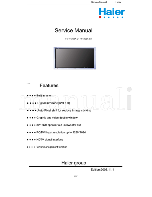 Discover Haier air conditioner and home video electronics service and operating manuals, available as downloadable PDFs and binded copies. Our comprehensive guides provide detailed setup instructions, troubleshooting tips, and maintenance advice to keep your Haier devices running smoothly. Browse our collection to find the right manual for your Haier model today.