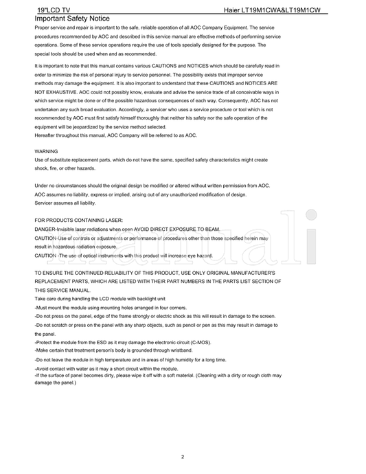 Haier 19LCD LT19M1CWA LT19M1CW (114 pages) TV Service Manual
