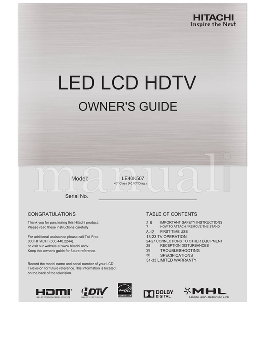 Hitachi LE40K507 (44 pages) TV Operating Manual