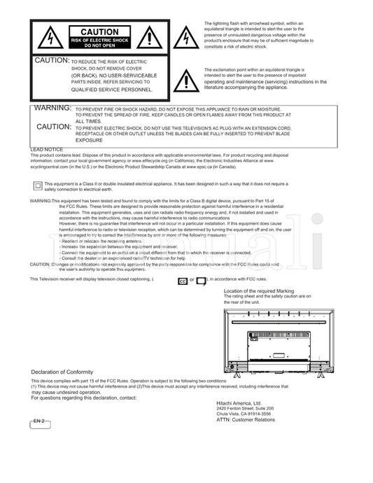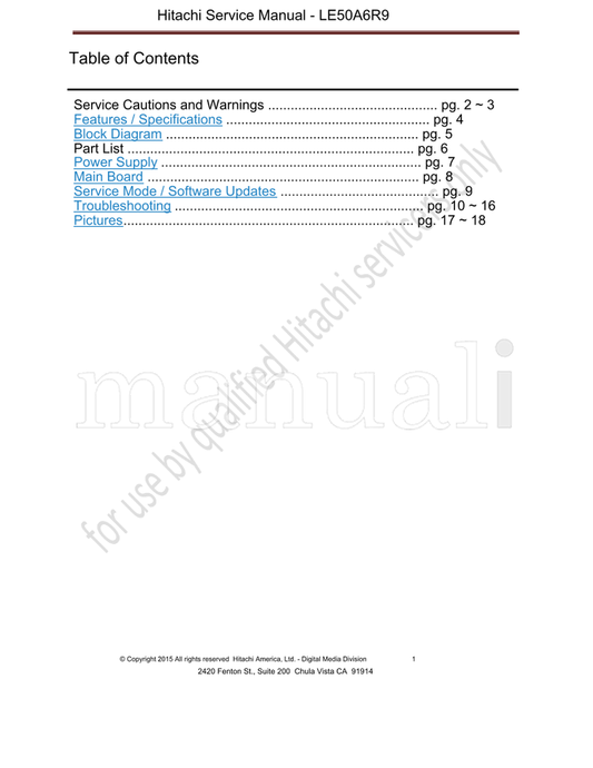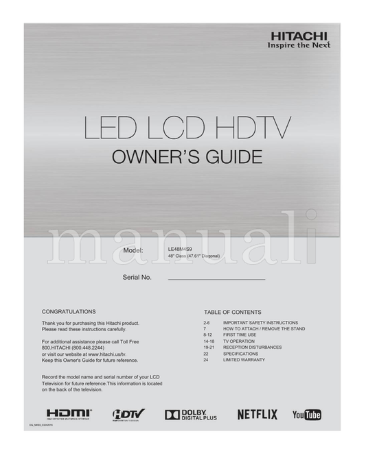 Explore Hitachi home audio, video, and TV service and operating manuals, available as downloadable PDFs and binded copies. Our detailed guides provide comprehensive setup instructions, troubleshooting tips, and maintenance advice to ensure the optimal performance of your Hitachi devices. Browse our collection today to find the perfect manual for your model.