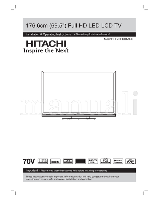 Hitachi LE70EC04AUD (39 pages) TV Operating Manual