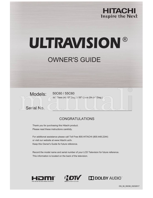 Hitachi 50C60 55C60 OG5055C6003232017 (40 pages) TV Operating Manual