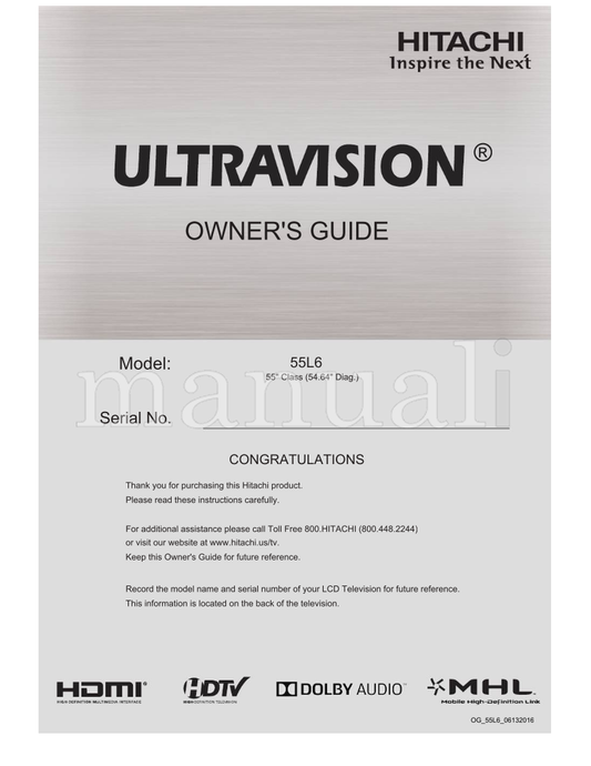 Hitachi OG55L606132016 (42 pages) TV Operating Manual