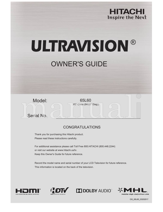Hitachi 65L60 OG65L6003202017 (42 pages) TV Operating Manual