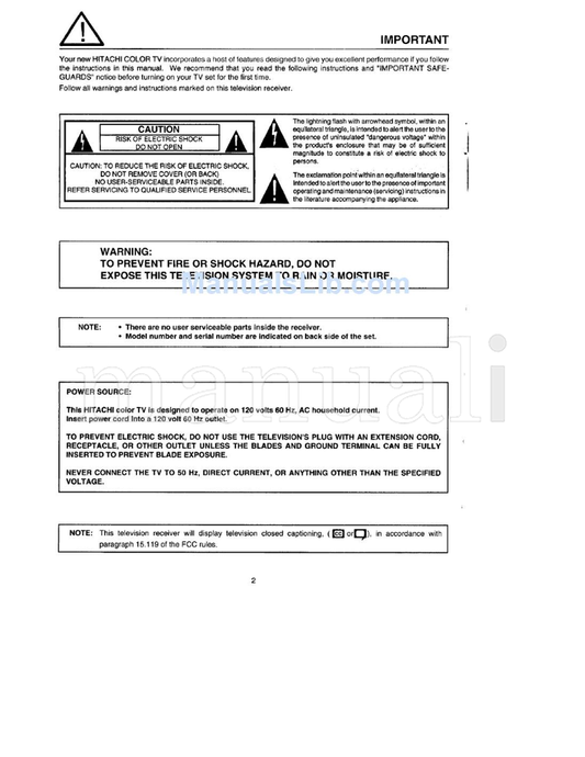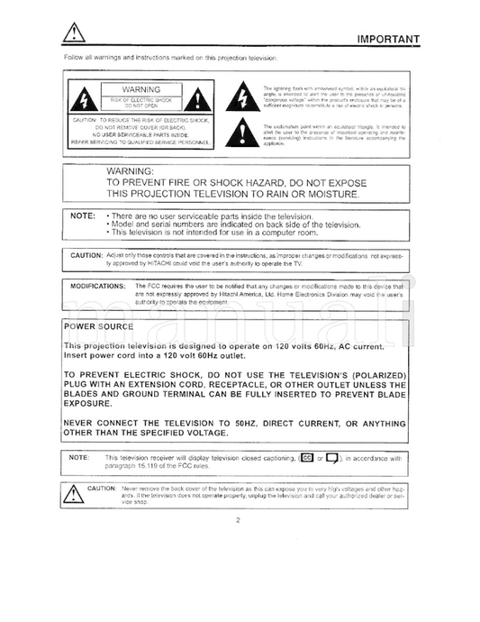 Explore Hitachi home audio, video, and TV service and operating manuals, available as downloadable PDFs and binded copies. Our detailed guides provide comprehensive setup instructions, troubleshooting tips, and maintenance advice to ensure the optimal performance of your Hitachi devices. Browse our collection today to find the perfect manual for your model.