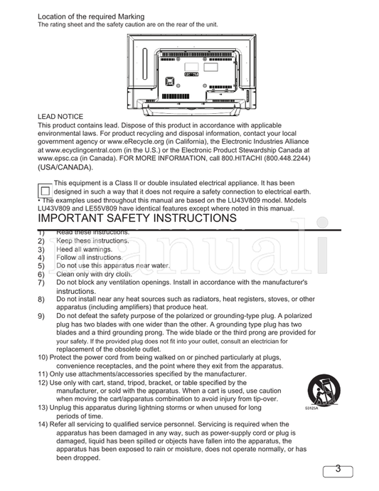 Hitachi LU43V809 LU55V809 OGV80912292015 (44 pages) TV Operating Manual