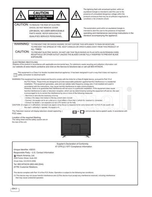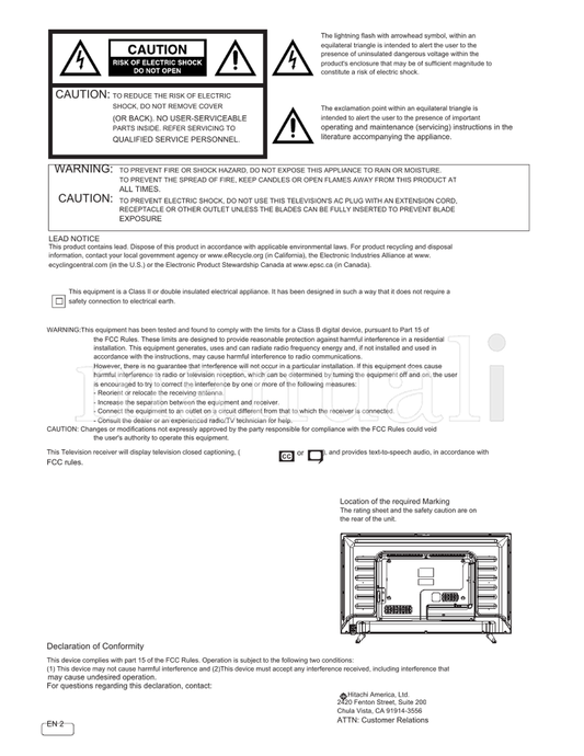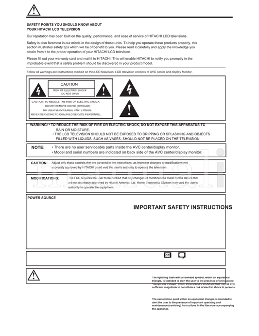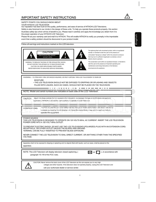 Explore Hitachi home audio, video, and TV service and operating manuals, available as downloadable PDFs and binded copies. Our detailed guides provide comprehensive setup instructions, troubleshooting tips, and maintenance advice to ensure the optimal performance of your Hitachi devices. Browse our collection today to find the perfect manual for your model.