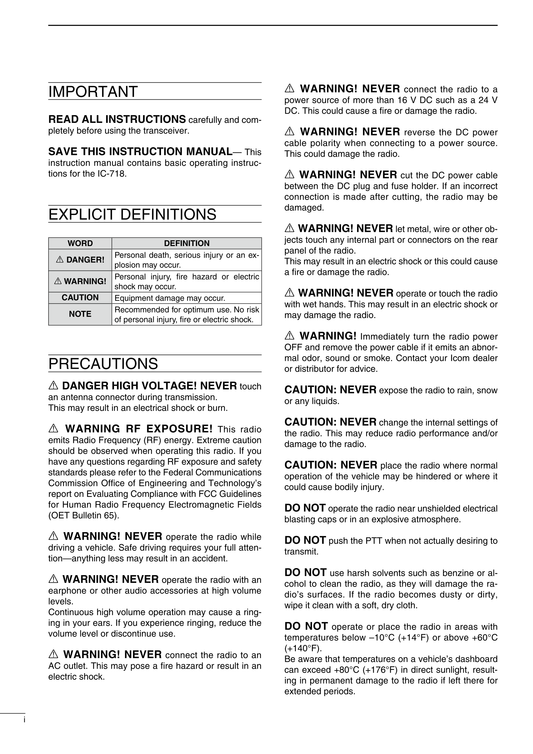 Icom IC-718 HF All Band Transceiver Owner/ User Manual (Pages: 72)