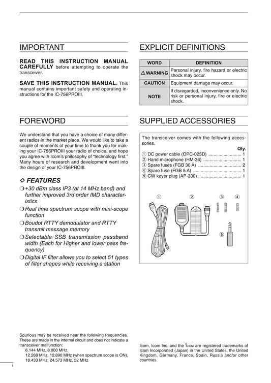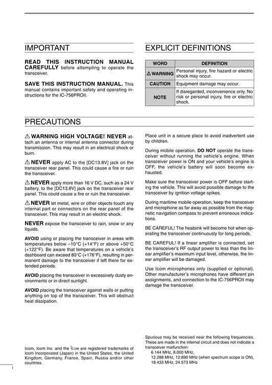 Icom IC-756 PROII All Mode Transceiver Owner/ User Manual (Pages: 88)