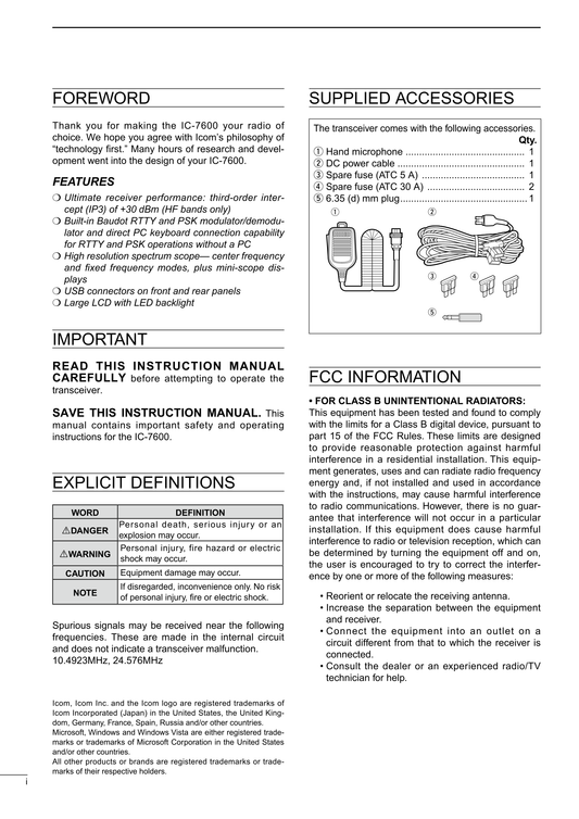 Icom IC-7600 HF/ 50 MHz Transceiver Owner/ User Manual (Pages: 180)