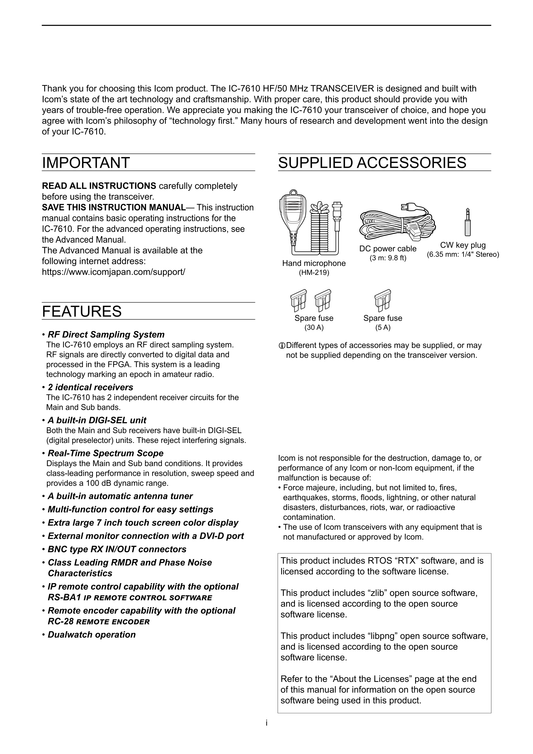 Icom IC-7610 HF/ 50 MHz Transceiver Owner/ User Manual (Pages: 101)
