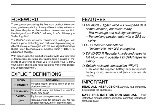 Icom IC-80 AD VHF/UHF Digital Transceiver Owner/ User Manual (Pages: 188)