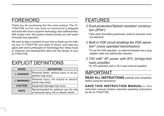 Explore the world of Icom with Manuali, your ultimate source for comprehensive manuals tailored to Icom products. Whether you're a seasoned sailor, amateur radio operator, or aviation enthusiast, Manuali offers an extensive collection of manuals covering Icom's range of communication and navigation equipment. From robust marine radios and amateur radio transceivers to sophisticated airband radios and GPS receivers, our library ensures you have the essential guidance for setup, operation, and maintenance of your Icom devices. Dive into our curated selection and experience the reliability and innovation that define Icom's commitment to communication excellence.