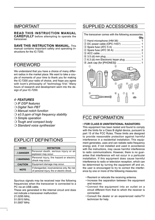 Icom IC-7200 HF/ 50 MHz Transceiver Owner/ User Manual (Pages: 104)