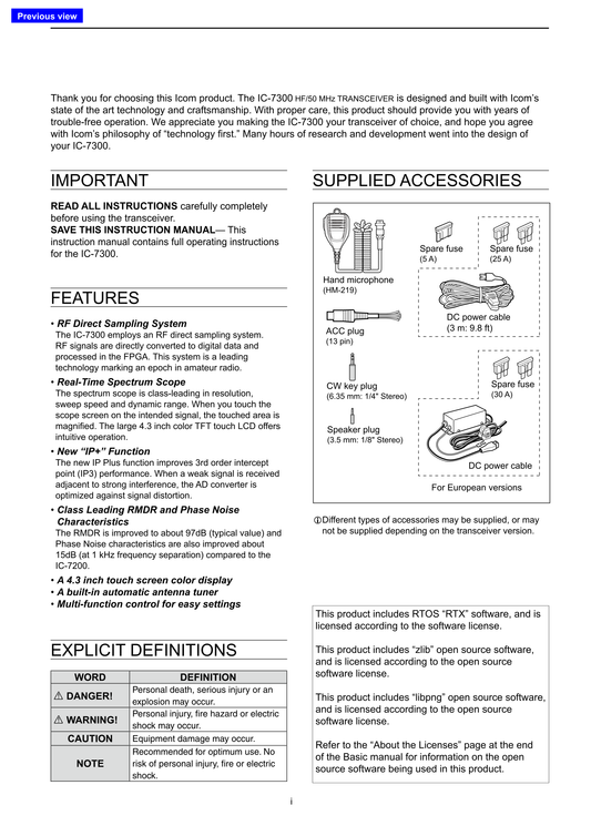 Icom IC-7300 HF/ 50 MHz Transceiver Owner/ User Manual (Pages: 174)