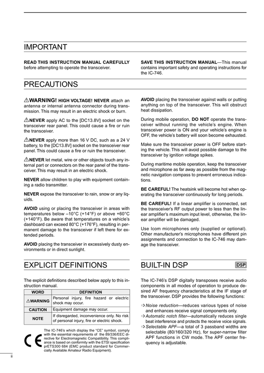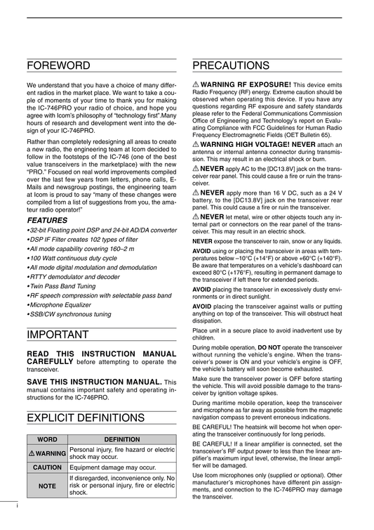 Icom IC-746 PRO All Mode Transceiver Owner/ User Manual (Pages: 116)