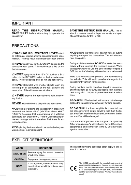 Icom IC-756 All Mode Transceiver Owner/ User Manual (Pages: 72)