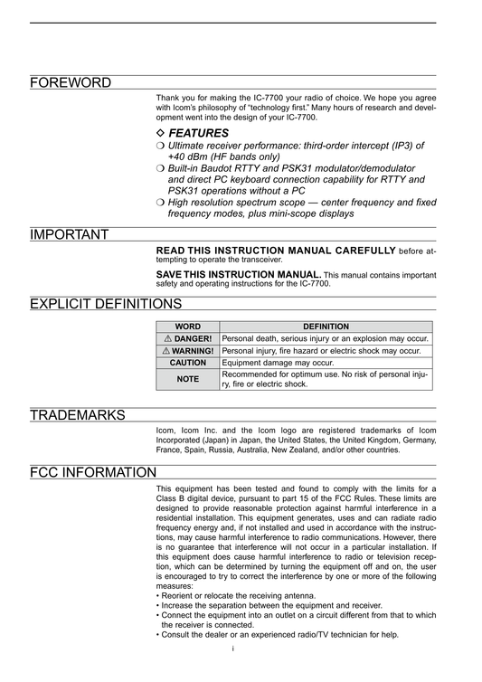 Icom IC-7700 HF/ 50 MHz Transceiver Owner/ User Manual (Pages: 232)