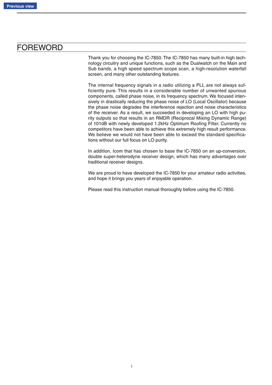 Icom IC-7850 Transceiver Owner/ User Manual (Pages: 278)