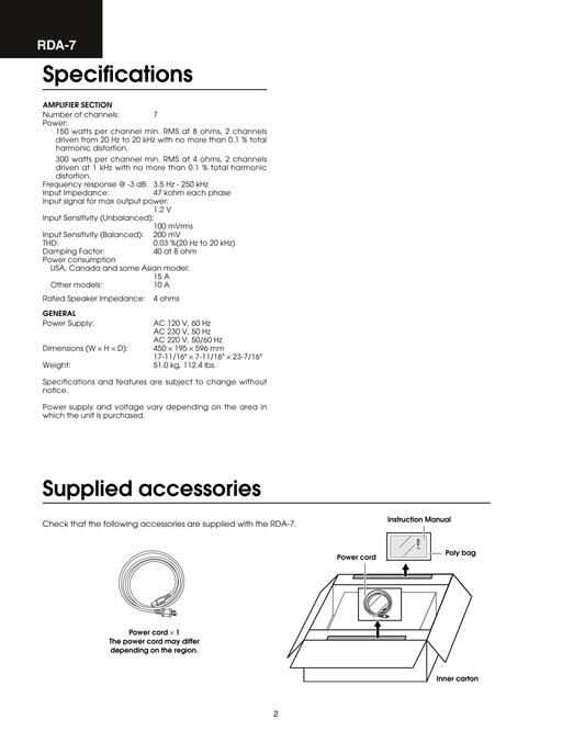 Integra RDA-7 Seven Channel Amplifier Service Manual (Pages: 28)