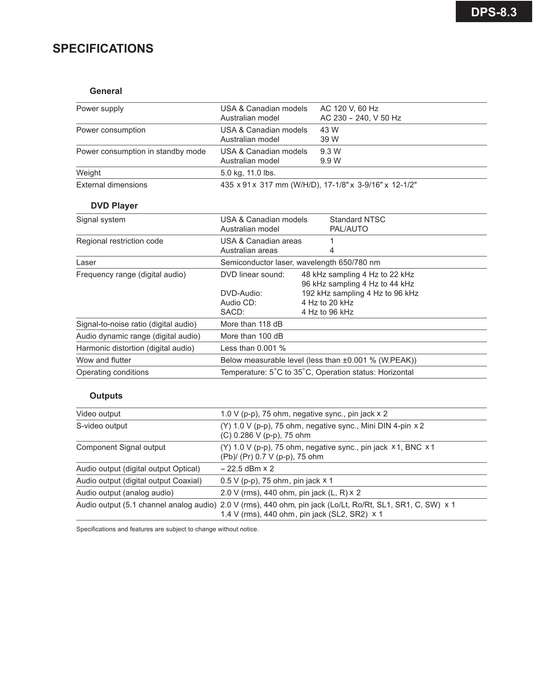 Integra DPS-8.3 DVD Player Service Manual (Pages: 99)