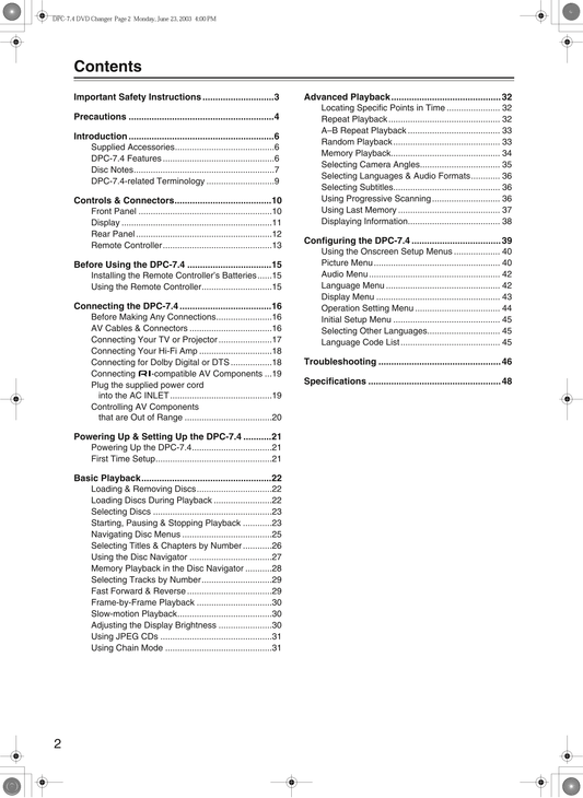 Integra DPC-7.4 DVD Changer Owner's/ User Manual (Pages: 48)