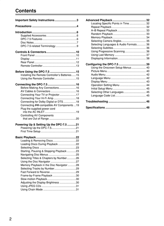 Integra DPC-7.5 DVD Changer Owner's/ User Manual (Pages: 48)
