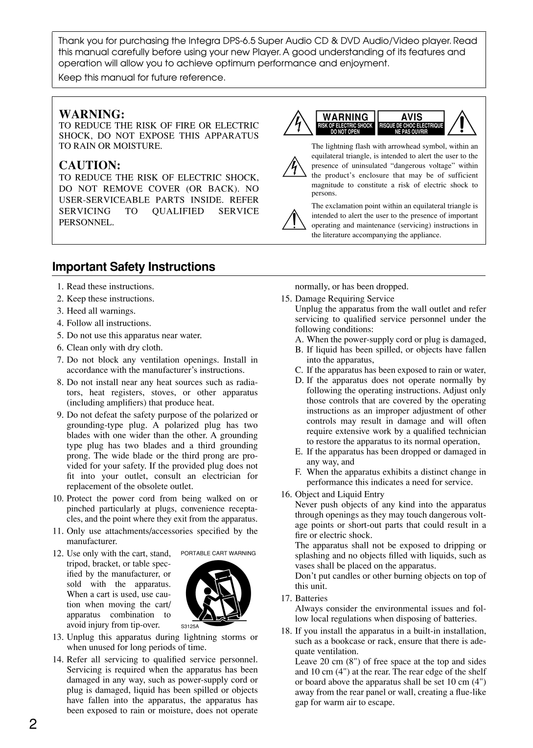 Integra DPS-6.7 CD/ DVD Player Owner's/ User Manual (Pages: 64)