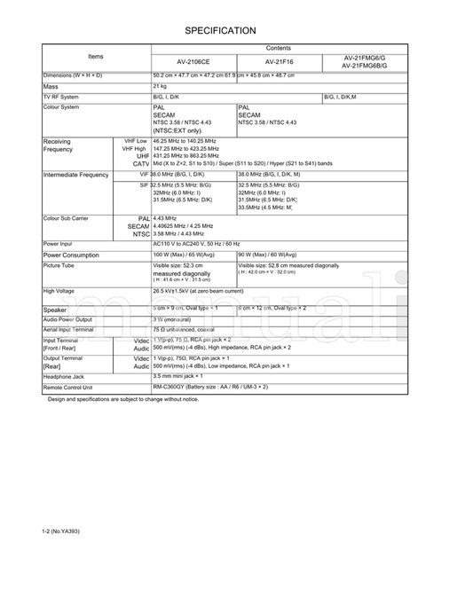 JVC YA393 AV-2106CE AV-21F16 AV-21FMG6 AV-21FMG6B (96 pages) TV Service Manual