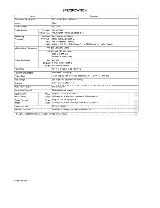 JVC YA394 AV-2106TE AV-21T16 RM-C360GY (89 pages) TV Service Manual