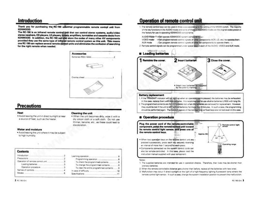 Kenwood RC190 Operating Manual Audio/Video Receiver