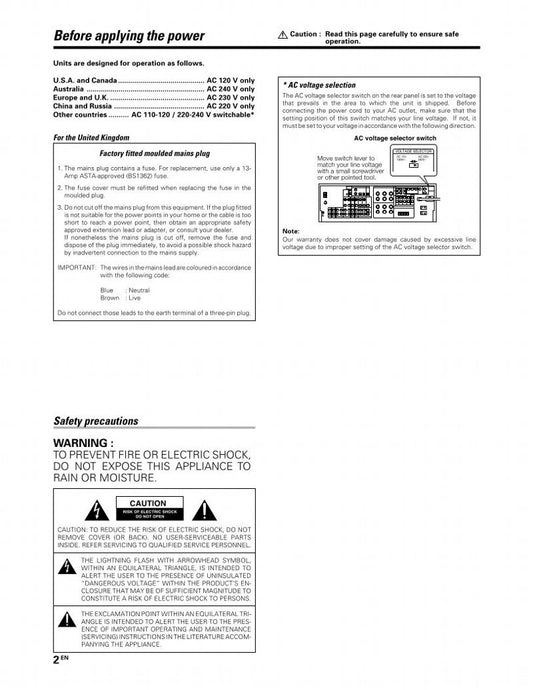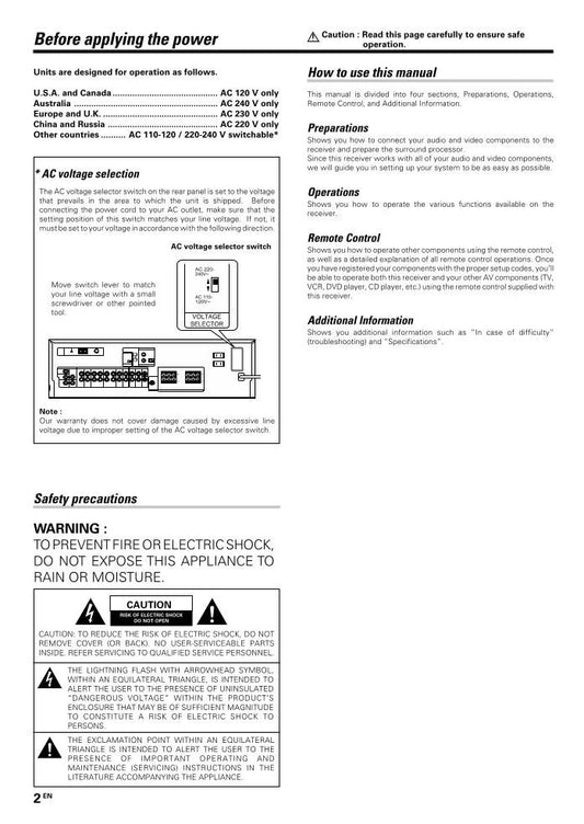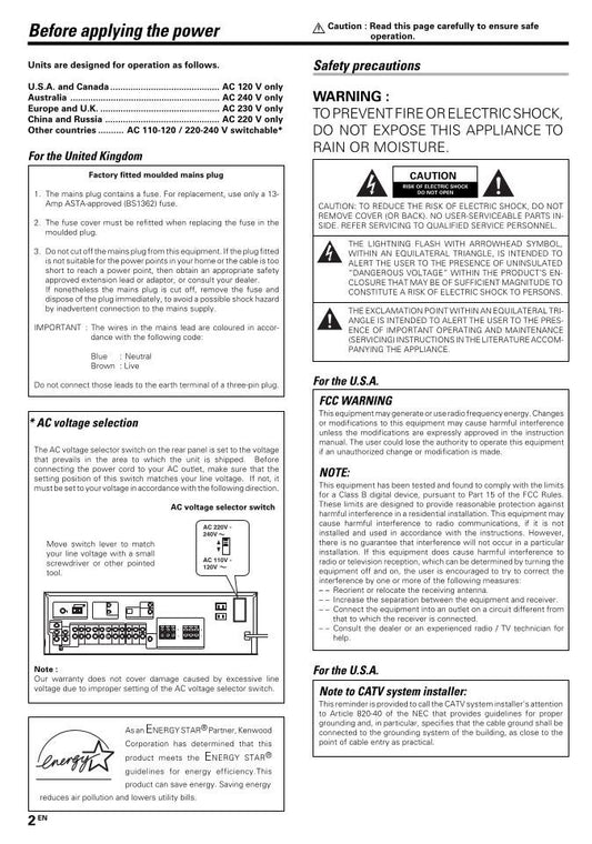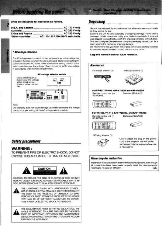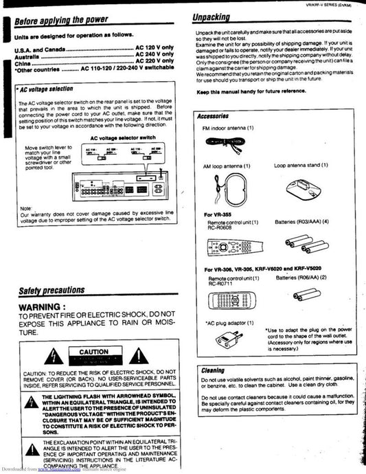 Kenwood VR305 Audio/Video Receiver Operating Manual