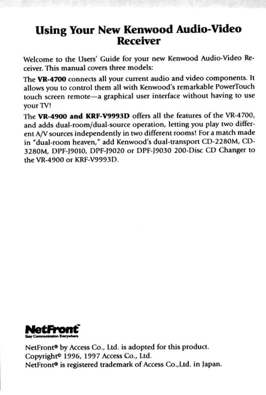 Kenwood KRFV9993D VR4700 VR4900 Audio System Operating Manual