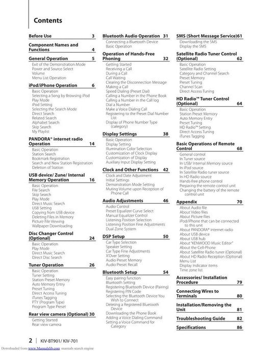 Kenwood KIVBT901 Car Audio System Operating Manual