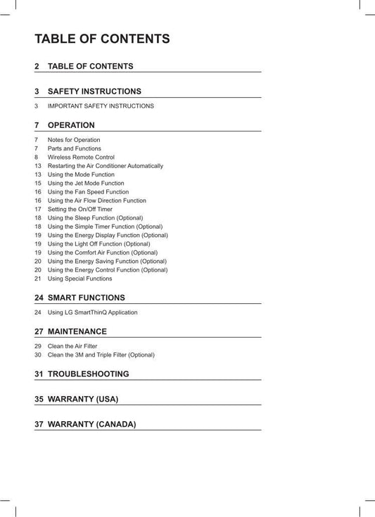 LG LSN180 HSV4 Air Conditioner Unit Operating Manual