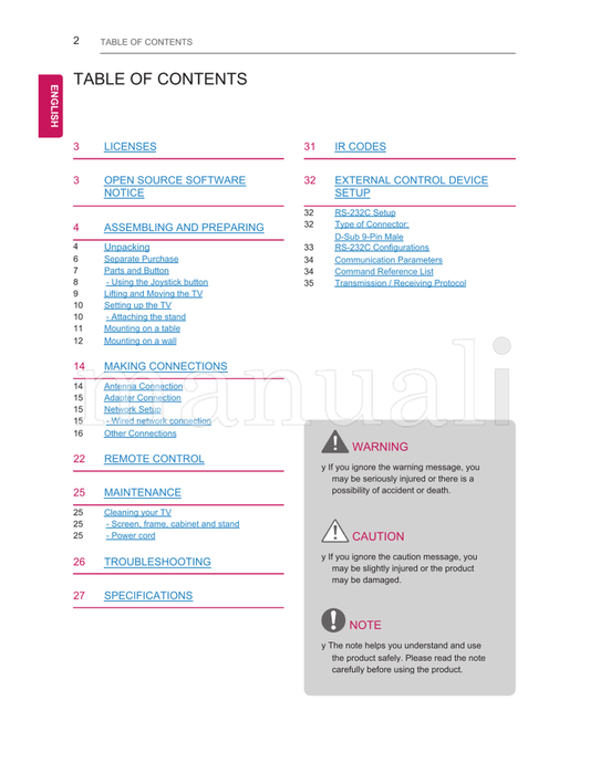 LG LY33** LY34** LY54** LY31** (39 pages) TV Operating Manual