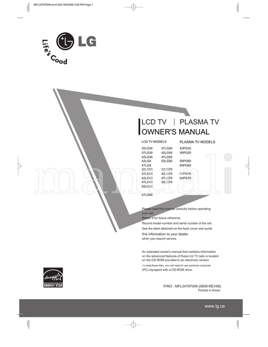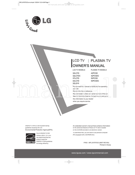 LG MFL41469207en-Edit1 42PG20R 26LG30R 50PG20R 32LG30R 37LG30R (100 pages) TV Operating Manual
