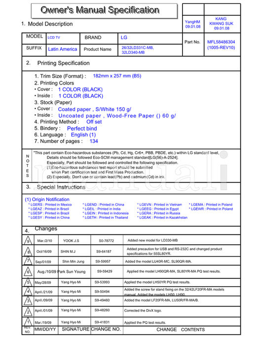 LG SAC34026003 (130 pages) TV Operating Manual