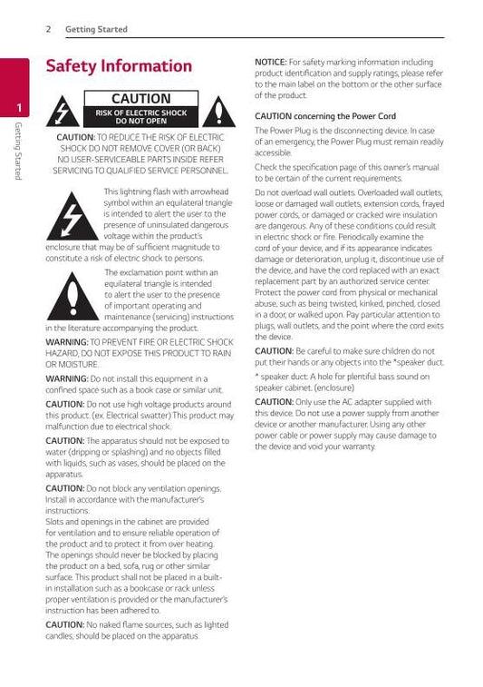 LG SJ5Y SPJ5B-W Sound Bar System Operating Manual