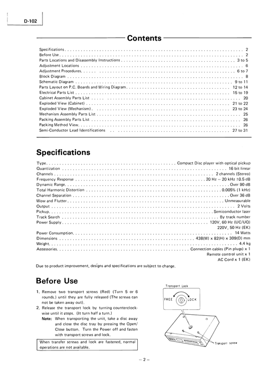Luxman D-102 CD Player Service Manual (Pages: 29)