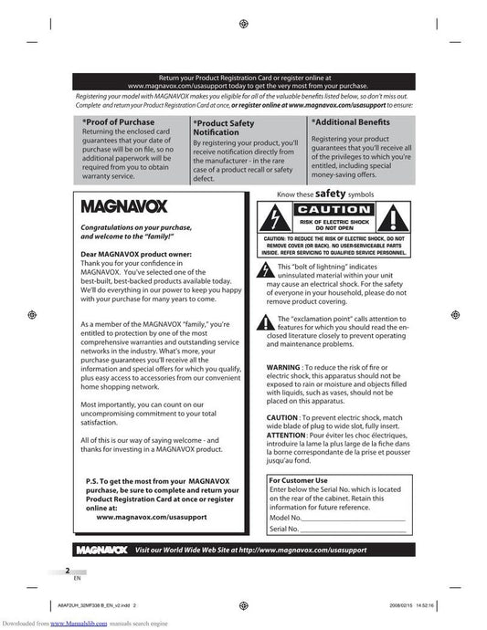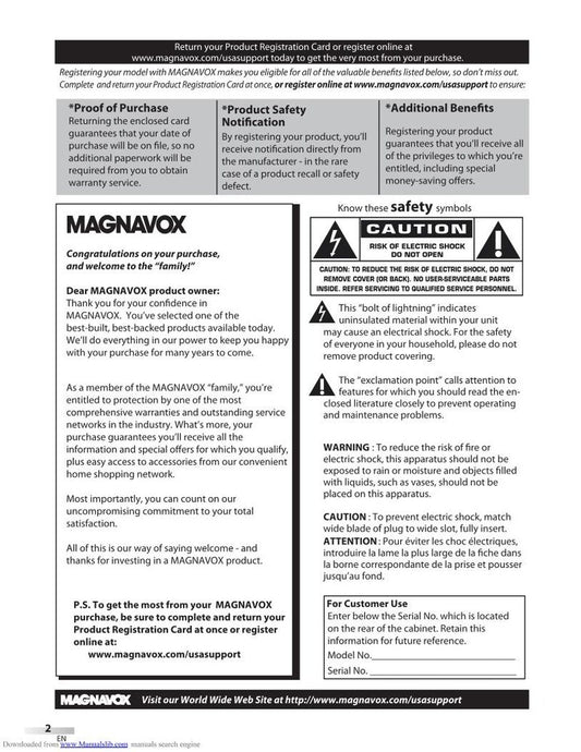 Explore Magnavox TV, DVD, soundbar, digital converter box, and audio service and operating manuals, available as downloadable PDFs and binded copies. Our detailed guides provide setup instructions, troubleshooting tips, and maintenance advice to ensure your Magnavox devices perform at their best. Browse our collection today to find the perfect manual for your model.