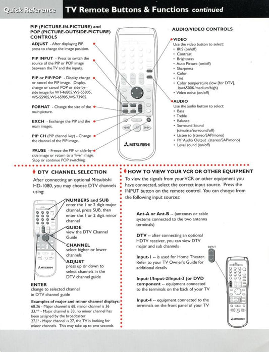 Discover Mitsubishi TV and home video service and operating manuals, available as downloadable PDFs and binded copies. Our comprehensive guides provide setup instructions, troubleshooting tips, and maintenance advice to keep your Mitsubishi devices running smoothly. Browse our collection today to find the perfect manual for your model.