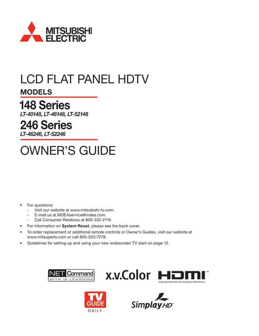 Mitsubishi LT40148 LT46148 LT46246 TV Operating Manual